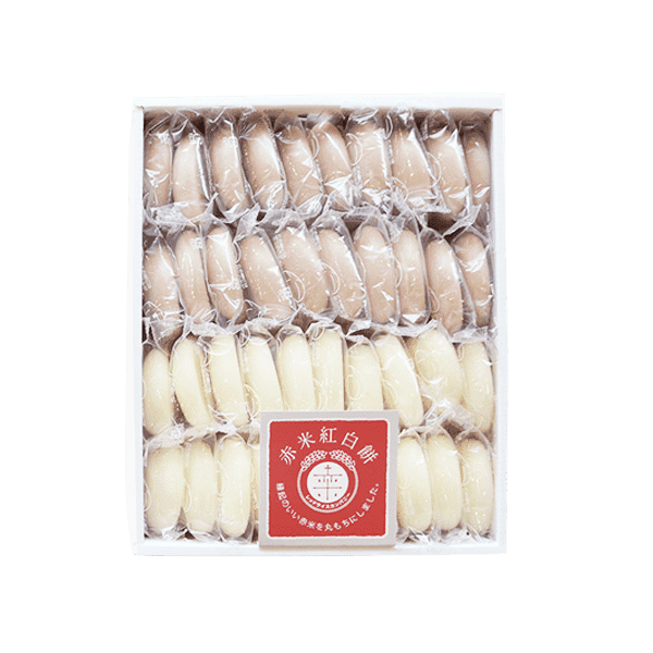 ⇒リシュマムの一升餅(小分けタイプ)は紅白合わせて50個入り(赤餅25個・白餅25個)で約1.8kgです。個包装になっているので、おすそ分けにも便利です。