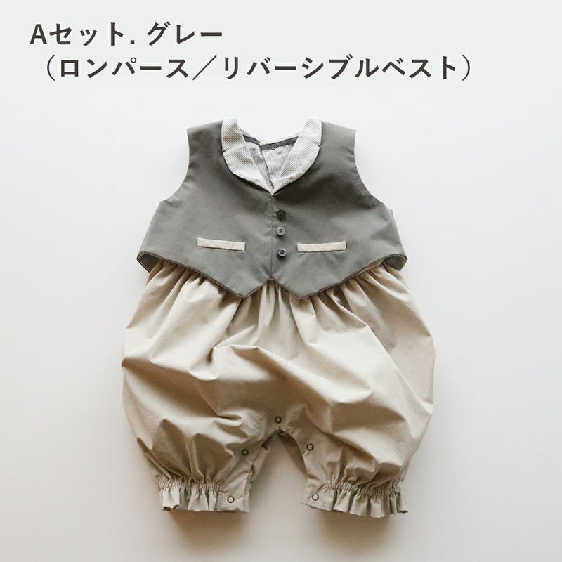 ロンパース+リバーシブルベスト(グレー)