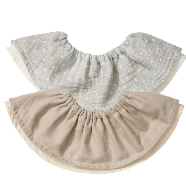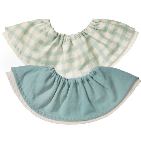 上のダブルガーゼは高い吸水性でよだれをしっかり吸収、