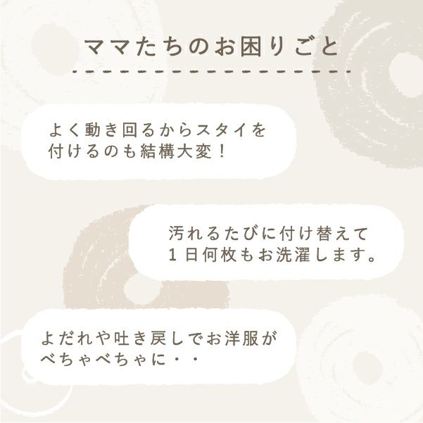 汚れるたびに1日3~4枚のスタイ付け替えたり、