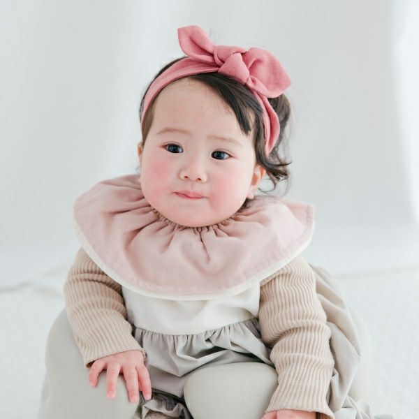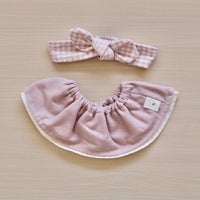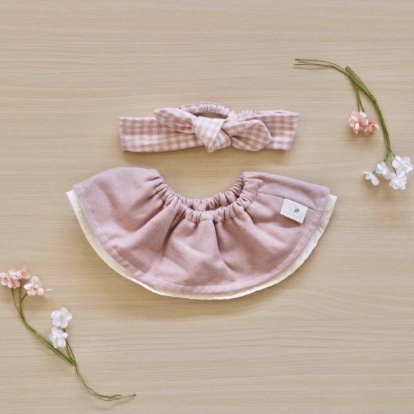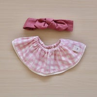 • 無地ピンクスタイ×チェックピンクヘアバンド
