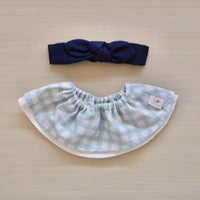 • チェックブルースタイ×無地ネイビーヘアバンド