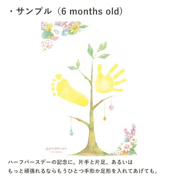 命名台紙には、名前とその由来、誕生記録を記すことができます。 生まれた時の写真を貼り、未来のわが子へ向けたメッセージを、家族みんなで書き込みましょう。 手形と足形用の台紙は、0ヶ月・3ヶ月・6ヶ月・1歳の成長記録を想定していますが、多少時期がずれてもお使いいただけます。