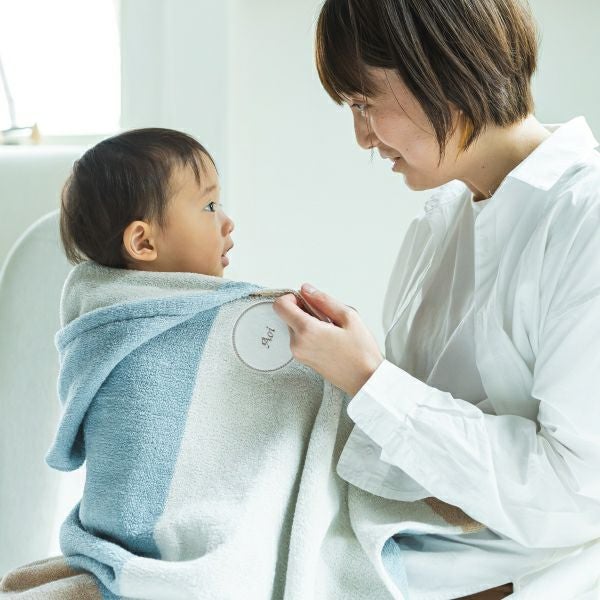 赤ちゃんを優しく包む“ベビーバスポンチョ”