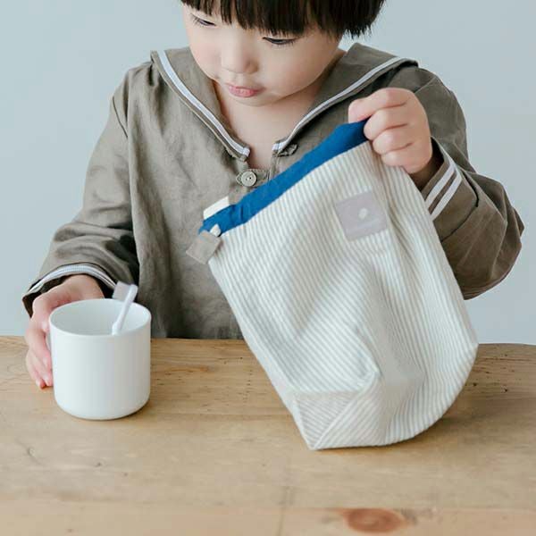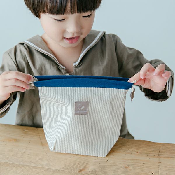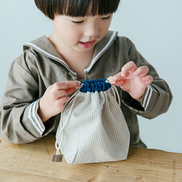 小さなお子さまが使うものだから、巾着のひもが絞りやすく開けやすい工夫を施しています。