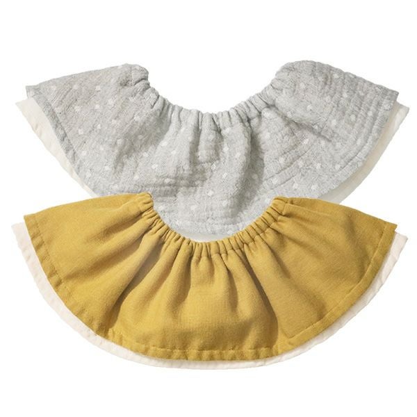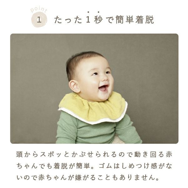 上のダブルガーゼは高い吸水性でよだれをしっかり吸収、