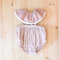 長く使える、1歳お誕生日、出産祝いにおススメ。 紐付きかぼちゃパンツ+名入れドーナツスタイのセット