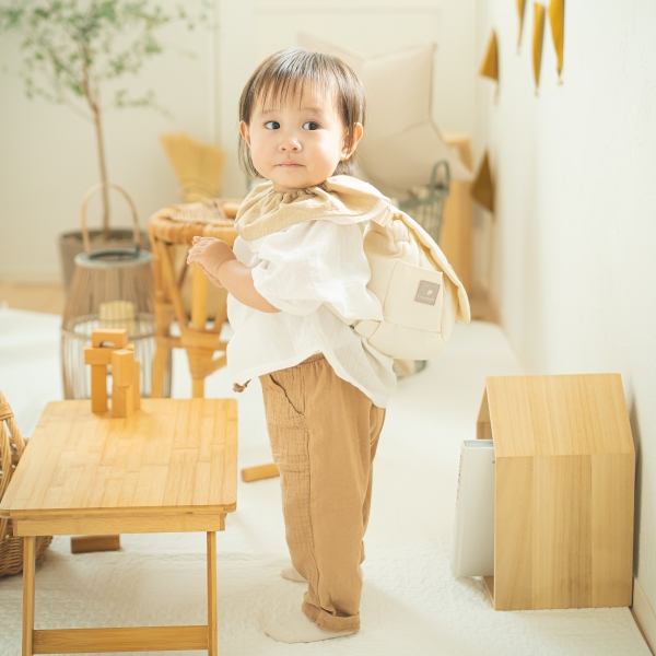ベビーリュックを使ったコーディネートをご紹介します。