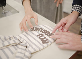 数が増えた今も、縫製や名入れを担う職人さんがひとり、またひとりと加わり、すべてを手づくりで仕上げています。