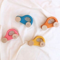 手で持ちやすいのか片手に1個づつ持ってカチャカチャと叩いてみたり、タイヤの所を回してみたり、楽しそうにあそんでました。