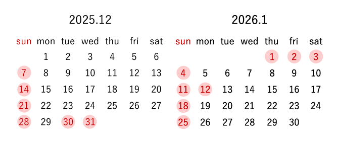 お客様サポートは赤字の日は定休日となります。メールでのお問い合わせは営業日の9時30分から18時の間で順番にお返事をさせていただきます。