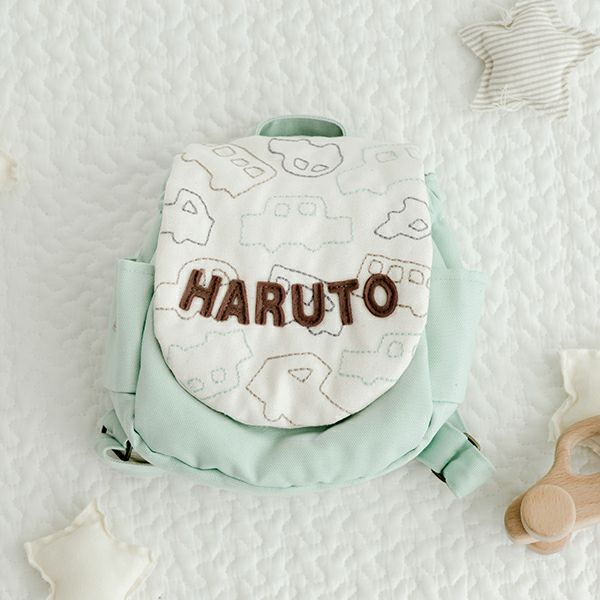 名入れベビーリュック【お花・くるま刺繍】お絵かきデザイン 1歳誕生日・出産祝い
